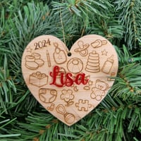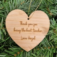Thank your teachers with these cute decorations. Choose from an apple, Christmas tree or heart shaped decoration etched with school, daycare, dance or cheerleader themed images. Personalize with a teachers name on the front and childs message on the back.