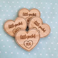 Pocket hugs come in a set of 4. Made from 3mm bamboo and are 4.5cm wide by 4cm tall.